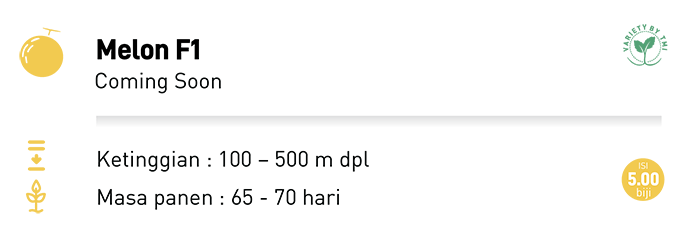 TM MANISH Merupakan Varietas Melon Hibrida. Tekstur dagingnya renyah, warna dagingnya hijau, jaringnya tebal, rasanya manis, dagingnya padat, cocok untuk transportasi jauh. Tanaman sangat seragam dan tahan terhadap serangan virus.