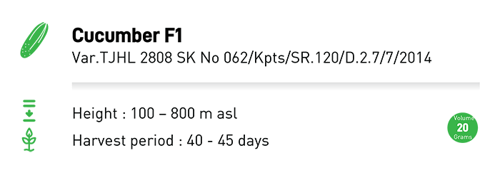 TM GLORY Is a large type of Hybrid Cucumber, the plant vigor is very strong & uniform. The fruit color is dark green and the fruit shape is cylindrical, the fruit size is 25 cm long, the diameter is 6 cm, the fruit weight is 300-400 gr. It has a shelf life of 7-10 days after harvest at room temperature & withstands long-distance transportation.