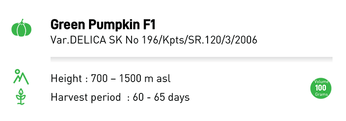 DELICA is a Superior Pumpkin Seed. Suitable for planting in the highlands and medium (700 – 1500 meters above sea level). Fruit weight about 1.8 kg. It tastes sweet and savory.